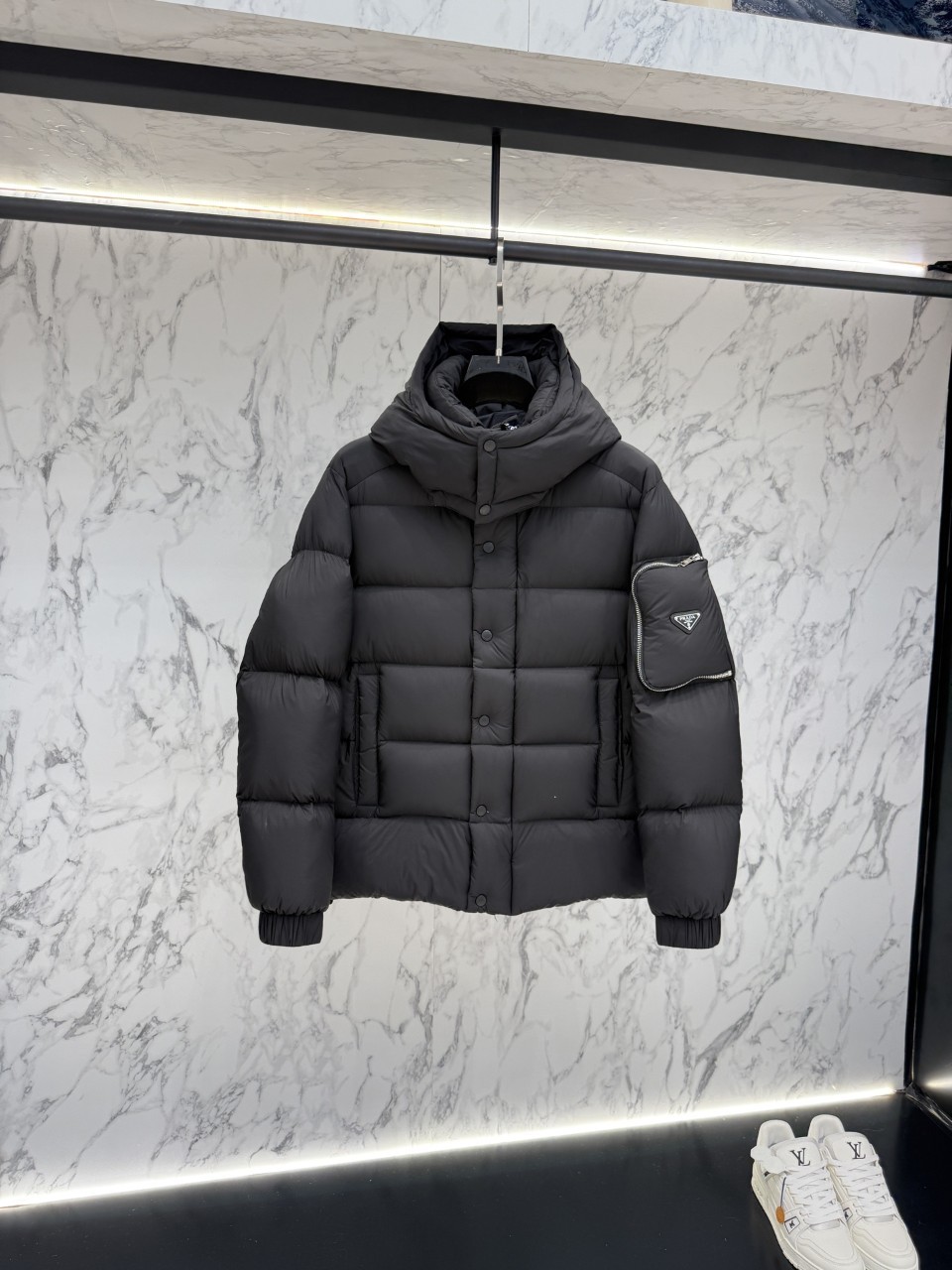 [국내배송]프라다 포켓로고 구스다운 후드 패딩