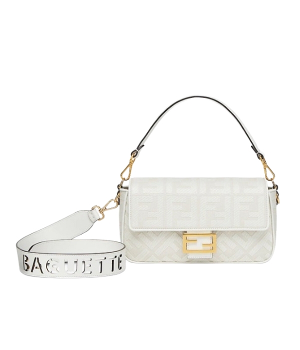 [프리미엄/해외배송]펜디 바게트 백 미디엄 FF 스트랩(화이트/자카드)